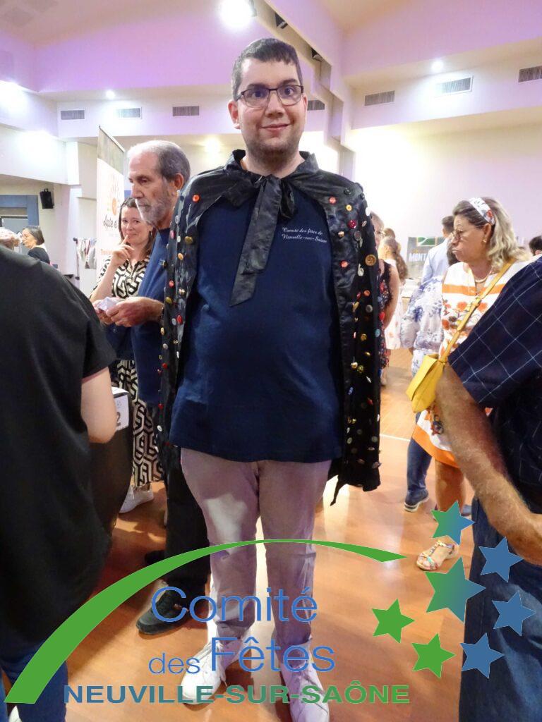 Nous avons aussi le plaisir de vous proposer un jeu consistant a estimer le nombre de boutons cousus sur une cape. Nous félicitons Mme Goutte qui a su déterminer le nombre exact de 354 boutons, et qui repart avec un repas pour deux personnes (hors boissons), offert par notre partenaire, le restaurateur Ô gones de Saône